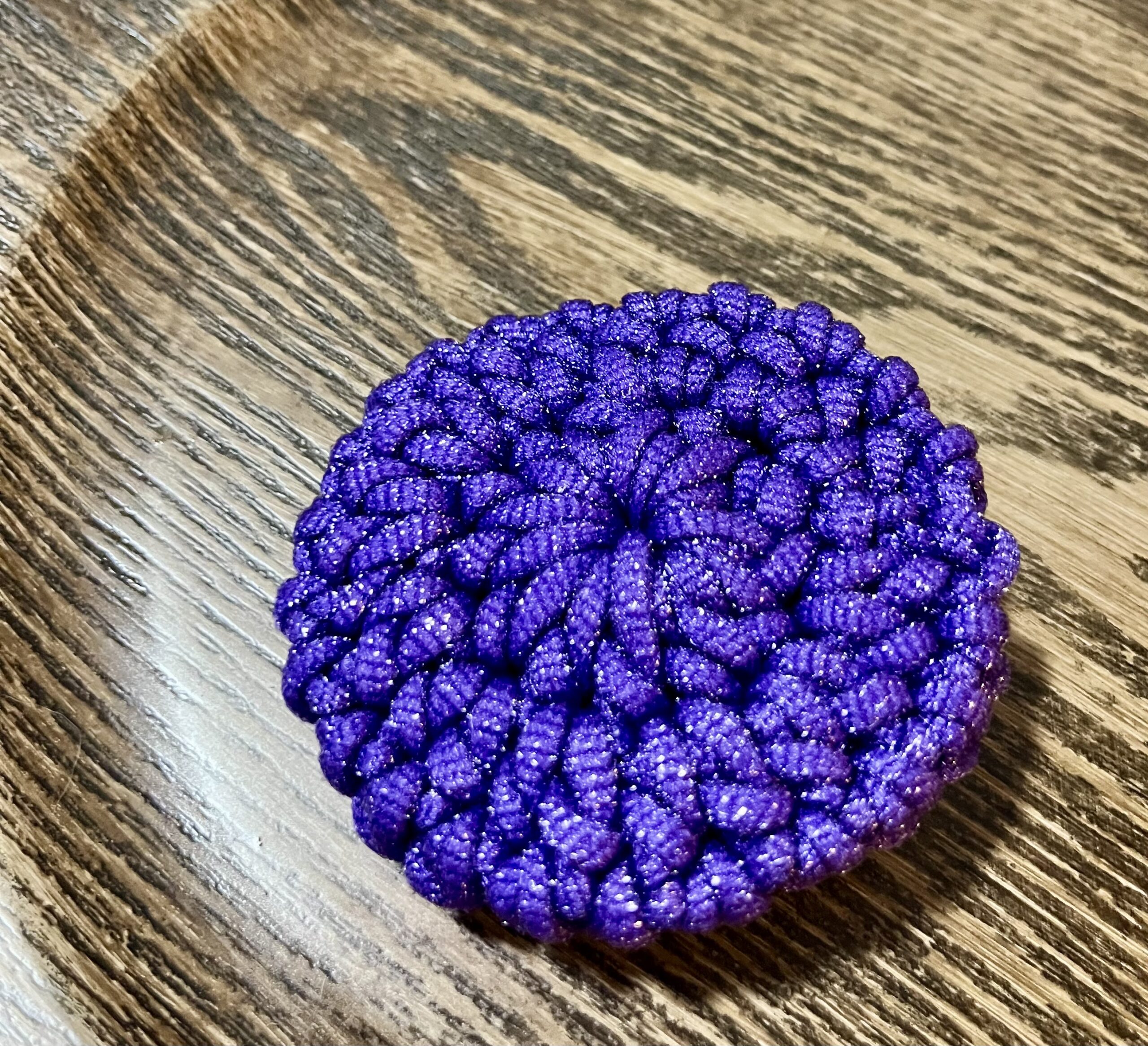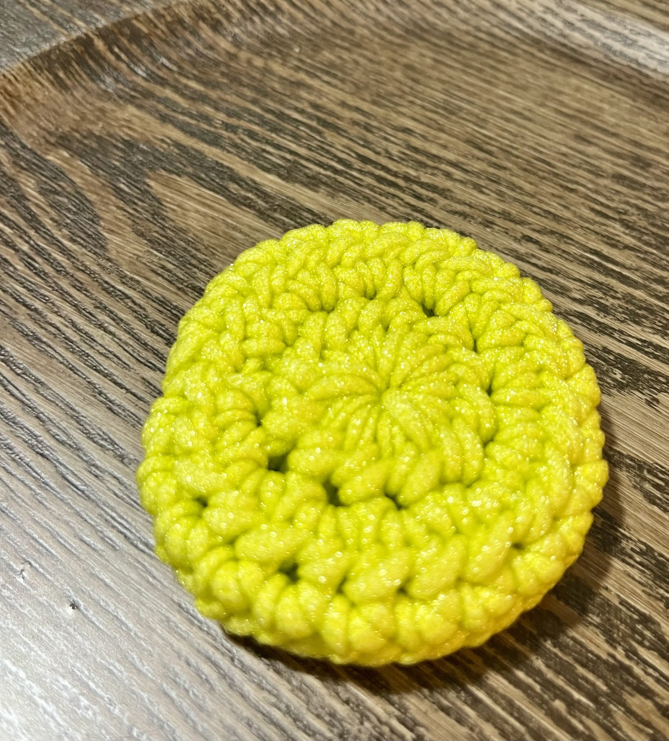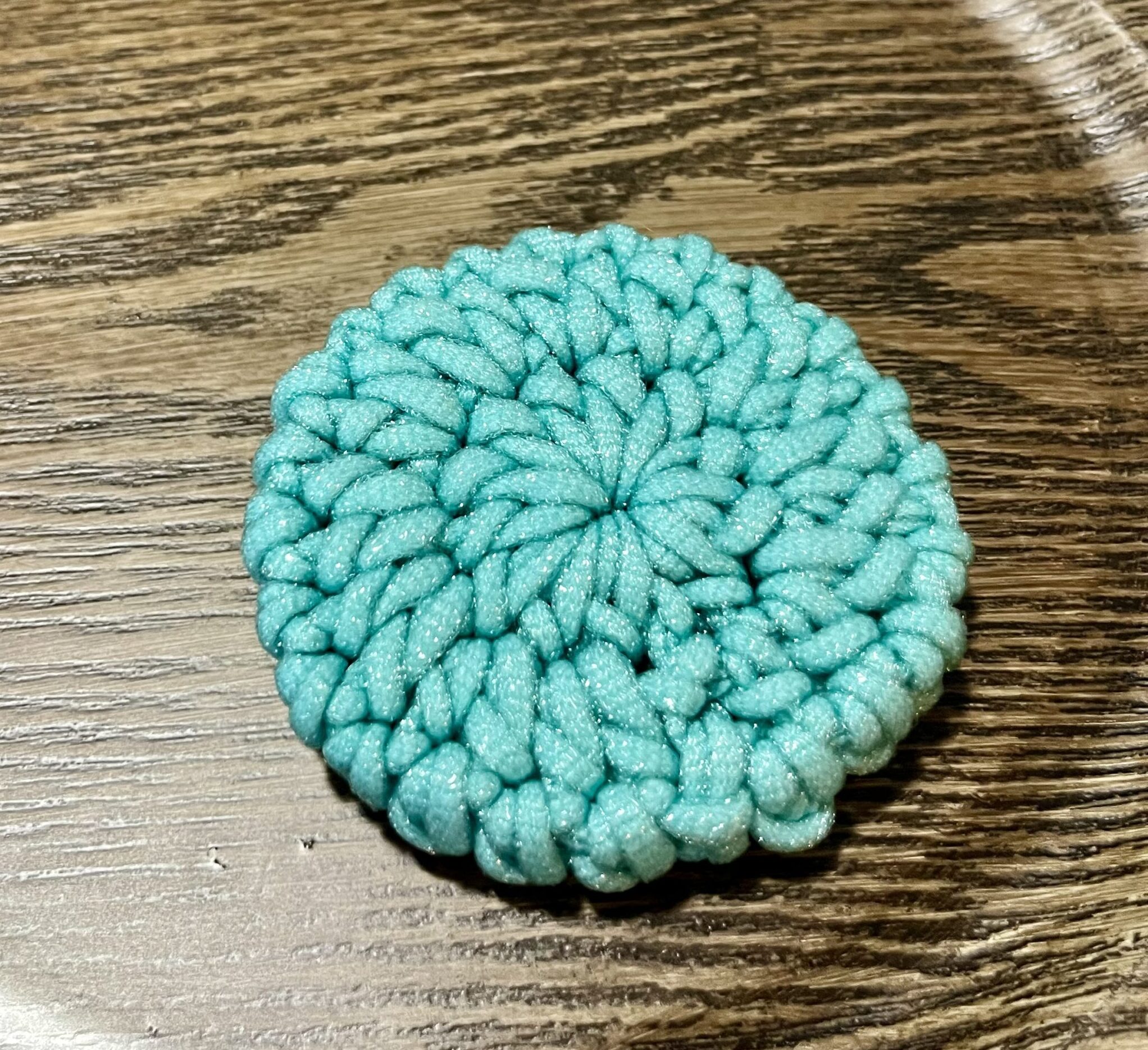 This long-lasting reusable dish scrubby is crafted from durable 100% nylon material, ensuring long-lasting performance for everyday cleaning tasks. The double-layer crochet design provides effective scrubbing power while remaining gentle on surfaces, making it suitable for non-stick cookware and delicate dishware. Its ergonomic round shape offers a comfortable grip for enhanced control during use. Designed for versatility and ease of maintenance, this scrubby is a practical addition to any kitchen cleaning routine. Toss it in the washing machine or in the top rack of the dishwasher when it needs cleaning.